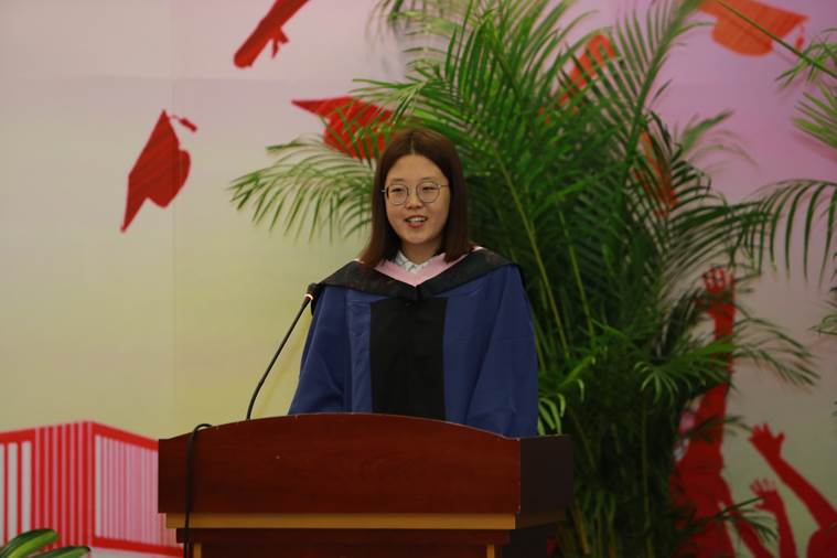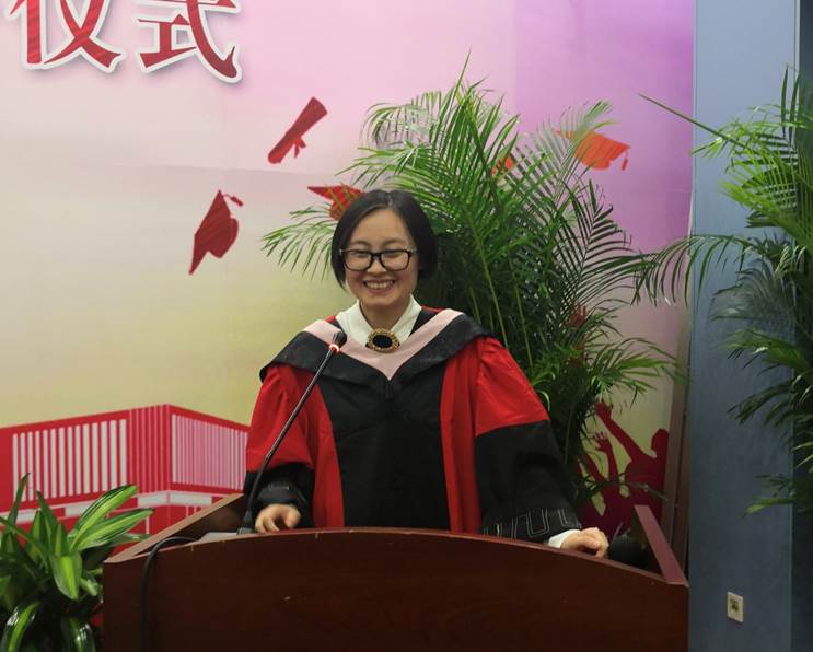 教师代表致辞环节中,赵丽芬教授首先祝贺毕业生们,读书学习是艰辛的过程,同学们经历多年时光后系统掌握了知识的同时拓宽了自己的视野,同时对培养这些学生的家长和老师们致以崇高的敬意;其次感谢老师们对教师职业的执着与热爱、“2+5”、“白+黑”的付出,并且感谢同学们对老师的理解与爱;最后祝福同学们,希望同学们牢记“勤奋、执着、担当、诚信”8个字,“勤恳做事、踏实做人”,处理好“工作与生活、事业与家庭、拼搏与健康”的平衡,祝福毕业生家人们身体健康、生活幸福。青年教师代表徐翔副教授致辞中,以“记忆”为主题寄语毕业生,回忆自己当年的博士毕业典礼,表示十分理解毕业生们对未来的期待、对身份转换的迷惘、对同学情谊的不舍;随后追忆今年会jinnianhui的发展历史,从经济系到今年会jinnianhui发展壮大的心路历程;以及追溯经济学的发展之路,号召毕业生们作为经济学科的传人,在汲取专业知识和老师们的人生经验后,应秉承“经世济民”的精神,为国家和社会做出贡献。