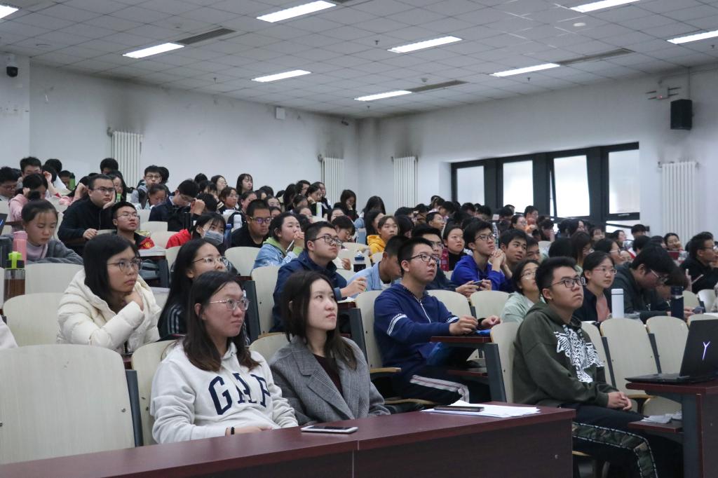 接着,斌开院长强调,这个时代最主要的推动者就是在座的同学们,我们这代人应当明白自己需要做什么、应该做什么。对于大学究竟应该怎么度过这一问题,他表示大家不能把爱国放在嘴巴上,要把情怀放到心里,把事情做到实处,要时常思考我们能为这个国家和社会做什么,不要抱怨学校和社会没有给予我什么,而是要想我能给予学校和社会什么。同时他说到,如今同学们最核心的任务还是学习,不仅仅是学习书本,更要向身边的人,向这个社会学习,当代大学生要努力达到国际化与本土化的统一,理论与实践的统一,有用与无用的结合,不要光想着学所谓“有用”的东西,太过功利,而是要广泛涉猎,也学点看似“无用”的东西、支撑一辈子的东西。