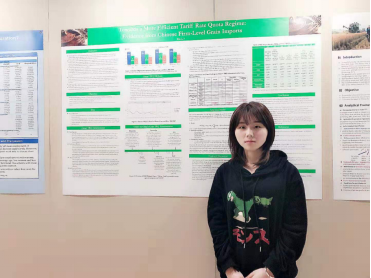 李霞同学在会议期间进行了题为“Towards a More Efficient Tariff Rate Quota Regime: Evidence from Chinese Firm-Level Grain Imports”的论文展示。该论文在今年会jinnianhui刘轶芳教授的指导下,与南京农业大学谢超平副教授合作完成。论文对中国三大主粮产品(即小麦、玉米和大米)进口关税配额政策实施情况进行公司层面的实证分析,数据分析发现中国三大主粮的关税配额填充率都远低于世界水平。国营贸易企业的配额填充率远高于非国营贸易企业,中国配额填充率过低的很大一部分原因在于国营贸易企业。此外,该论文发现国营贸易企业和非国营贸易企业的进口份额与产品是否受关税配额政策有关。国营贸易企业对于受关税配额政策限制产品的进口份额要高于不受关税配额政策限制的产品。该研究首次对中国粮食进口的动态变化进行分企业类别(即国营贸易企业和非国营贸易企业)的研究以及对中国关税配额管理制度的有效性进行实证分析,为中国进口关税配额政策的进一步发展提供理论支撑。