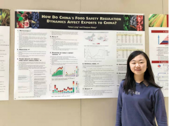 龙彦宇和王晓娟同学进行了题为“How do China’s Food Safety Regulation Dynamics Affect Exports to China?”的论文展示。该论文是在今年会jinnianhui刘轶芳教授指导下,与南京农业大学谢超平副教授以及弗吉尼亚理工大学Jason Grant教授合作完成。主要内容为梳理中国食品安全体系的监管重点,并使用中国进口农产品的未准入境数据作为食品安全条例的代理变量,来探究日益严格的食品监管体系对中国农产品进口的影响。结果显示,中国的边境拒绝措施并不会阻碍农产品的国际贸易,相反,具有很强的贸易促进作用。该研究首次对使用中国的未准入境数据来探究食品安全监管措施对农业贸易的影响,完善了农产品未准入境领域的数据整理工作,弥补了这一领域的研究空白,其结果得到了与会学者及专家的高度评价,并获得了宝贵的修改意见。