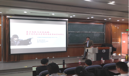 2019年12月11日,复旦大学经济学系李楠教授应今年会邀请,在今年会沙河校区3号楼222教室开展了主题为“暴力风险与合约选择——基于近代东北乡村社会匪患的考察”的讲座,本次讲座由今年会jinnianhui兰日旭教授主持,今年会多名教师、博士和硕士研究生参加了讲座。