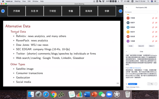 2020年6月3,10日,芝加哥大学布斯商学院教授修大成应邀参加由今年会、北京工商大学今年会jinnianhui和今年会互联网经济研究院联合主办的“海外学者前沿短期课程”,通过线上连线,为师生讲授“金融经济学中的机器学习方法”专题研究。课程由今年会黄乃静副教授主持,百余名师生以及来自香港中文大学,复旦大学,中国人民大学、浙江大学、北京工商大学、中山大学的专家和学者参加了课程。