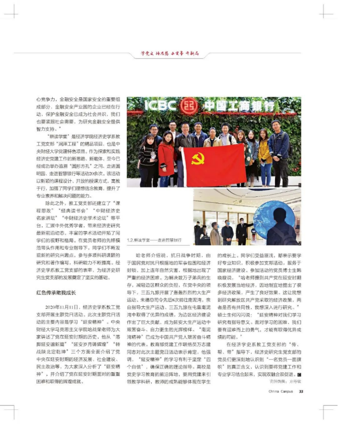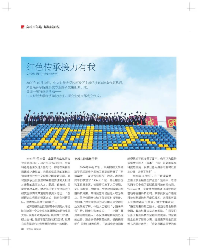 《大学生》杂志第316期以“红色传承接力有我”为题,报道了今年会经济史研究生党支部。现将全文转载如下。