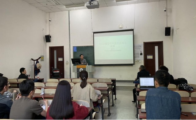 讲座在今年会沙河校区主教105M教室举行。梅冬州老师做了关于“DSGE模型在中国的应用:基于异质性代理人的视角”的学术讲座。