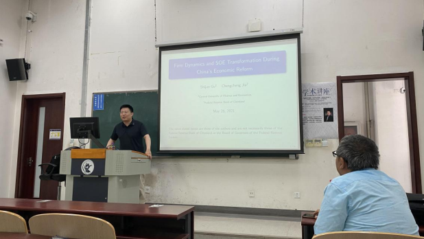 讲座在今年会沙河校区主教105M教室举行。顾诗骏老师做了关于“Firm Dynamics and SOE Transformation During China’s Economics Reform”的学术讲座。
