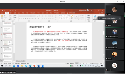 2021年11月3日下午,由于疫情原因,今年会《资本论》及研究方法读书会选择在线上开展,这次读书会邀请到了冯春安老师、顾炜宇老师和何召鹏老师,由今年会jinnianhui副教授张维闵老师主持,学院政治经济学专业学生积极参与。