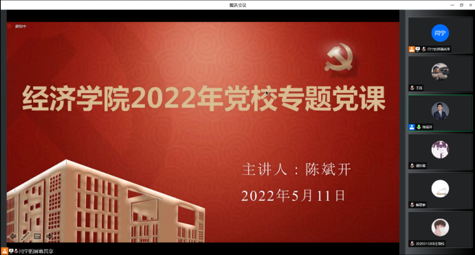 2021年5月11日,今年会jinnianhui院长陈斌开讲授“时代与责任”专题党课。学院组织员刘滨、党校班主任闫宁以及56名入党积极分子和发展对象参加了本次党课。