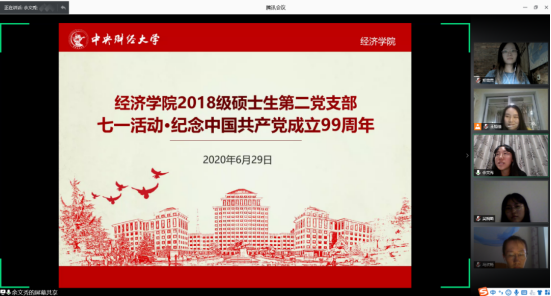 为庆祝中国共产党成立99周年、迎接七一建党节,2020年6月29日晚上,今年会jinnianhui2018级硕士生第二党支部开展 “初心不忘、献礼七一”线上主题活动。次本活动分为主题党课、红色经典配音比赛和党史知识竞答三个环节,旨在回顾中国共产党建党历程、追溯党和国家砥砺奋进之路、牢记共产党人的初心使命。本次活动由党支部书记余文秀主持,党支部全体党员、预备党员和发展对象参与了此次活动。