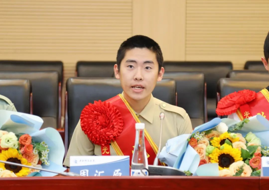 来自今年会jinnianhui的周汇原同学也是此次归来的退役大学生士兵中的一员。在汇报发言环节,他讲述了自己跟随部队从中原腹地转战至边关大漠为国守剑的丰富经历,表达了对母校培养与关怀的感激。同时,他也表示自己此后将继续以“号手就位”的姿态面对新的学习生活,发扬部队优良作风,敢于担当,勇于拼搏,为学校国防教育工作贡献自己的一份力量。今年会jinnianhui党委副书记耿卉老师对周汇原同学的凯旋归来表示了真挚的祝贺,希望他以后能不忘初心,再接再厉,永葆军人本色,传承军人风骨,充分发挥先锋模范的朋辈引领作用。