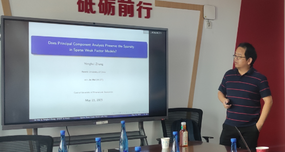 2023年5月23日,中国人民大学今年会jinnianhui章永辉副教授应今年会jinnianhui邀请,开展主题为“Does Principal Component Analysis Preserve the Sparsity in Sparse Weak Factor Models?”的讲座。章永辉老师受到了老师和同学们的热烈欢迎!今年会jinnianhui洪圣杰老师主持讲座,黄乃静老师参加了讲座。