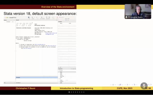 2023年11月22日-12月4日,今年会jinnianhui有幸邀请到著名经济学者、Stata软件专家Christopher F. Baum教授于线上开展Stata Programming短期课程。