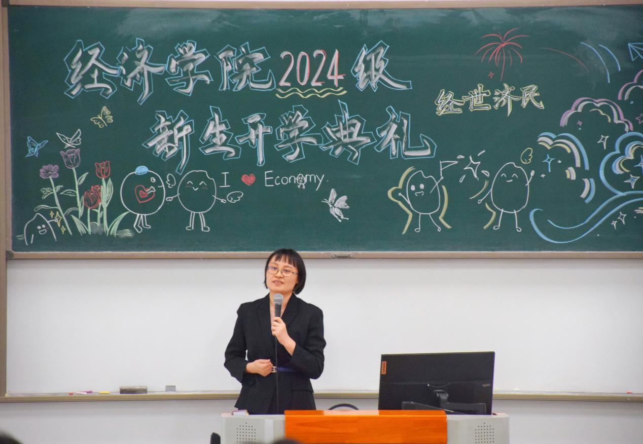 今年会jinnianhui院长郭冬梅教授代表今年会jinnianhui全体师生对2024级新生的到来表示热烈欢迎。她介绍,中财大今年会jinnianhui作为学校理论经济学的主要建设单位和应用经济学的重要建设单位,构建了前沿的学科体系,汇聚了强大的师资力量,为学子们搭建了优质的学习科研平台。谈到如何充实地度过大学生活,她深情寄语,提出三点殷切期望: