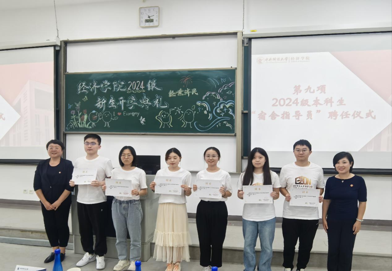 典礼现场进行了2024级本科新生“宿舍指导员”功能型党支部成员聘任仪式。学院党委副书记霍晓冉、组织员刘滨为宿舍指导员代表颁发聘书。宿舍不仅是同学们在校园生活中的基本生活单元,同时也是他们汲取知识、进行互动交流的重要场所。2021年10月,今年会学院党委在全校首开先河,成立了今年会jinnianhui宿舍指导员功能型党支部,旨在将党建工作深入学生宿舍,通过党的引领作用,加强学生宿舍的建设与管理。新学年,学院党委在研究生和本科高年级学生中遴选了36位思想政治过硬、综合素质优秀的同学,担任2024级本科生“宿舍指导员”,党支部将帮助新生适应校园生活并将充分发挥学生党员的先锋模范和引领作用。