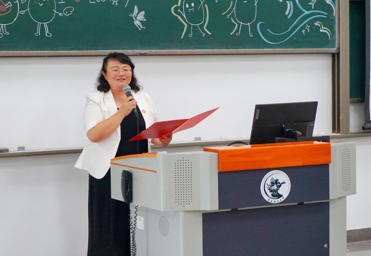 青年教师代表张佳梁鼓励同学们积极应对大学中的各种挑战,包括繁重的学业、复杂的社交环境以及未来的职业规划等,学会保持积极向上的心态,辨识并有效缓解压力。同时她还强调了明确个人目标的重要性,鼓励同学们积极探索自己的兴趣和优势,不断尝试新事物,拓宽自己的视野和知识面。