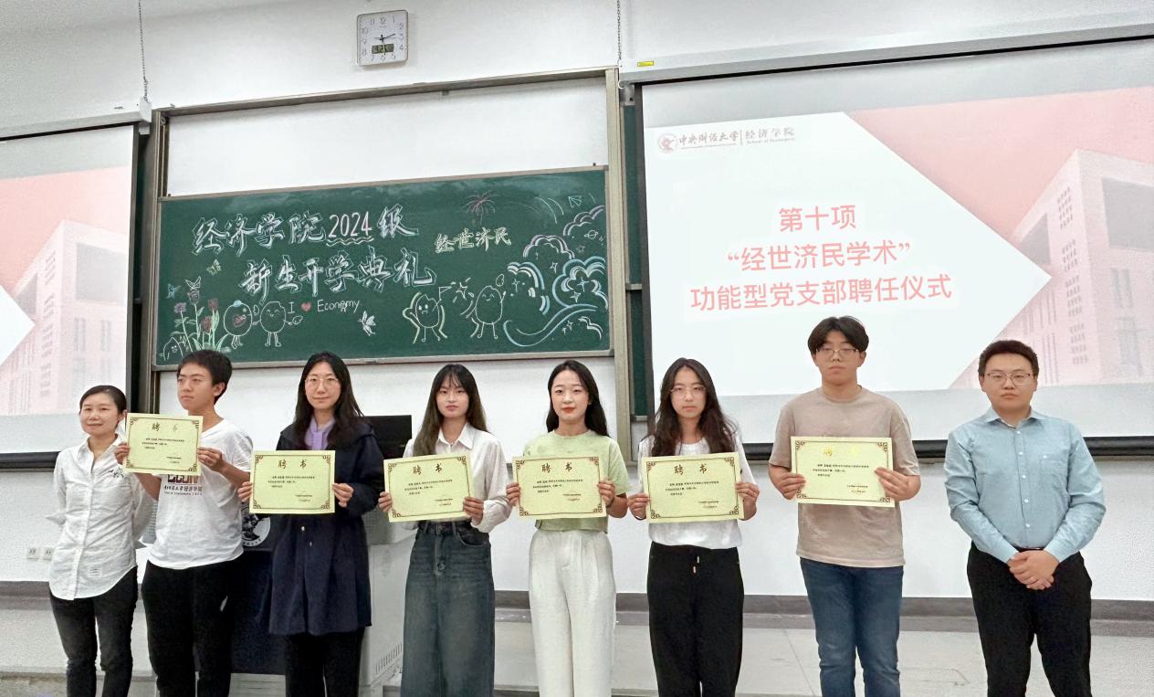 典礼现场举行了“经世济民学术”功能型党支部聘任仪式。今年会jinnianhui学科发展专项工作中心主任黄乃静、今年会jinnianhui人才培养专项工作办公室主任赵扶杨为“经世济民学术”功能型党支部成员代表颁发聘书。“经世济民学术”功能型党支部自成立四年以来,成功举办了众多学术讲座与研讨会,充分展现了在人才培养中科研育人的特色。该支部积极推动构建三全育人体系,为学院学术研究及科研工作的持续进步提供了有力支撑。