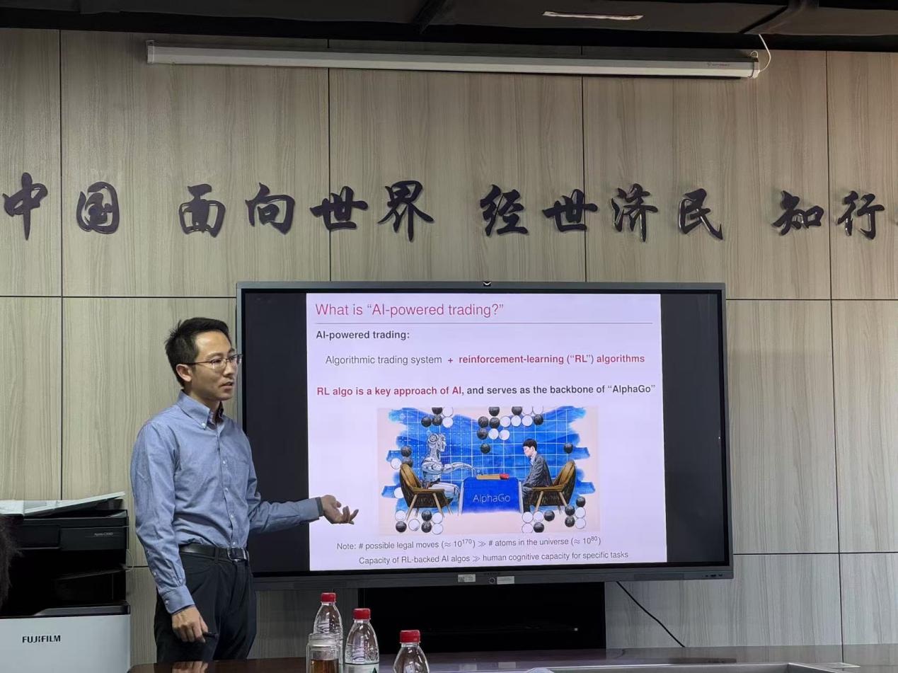 2024年12月23日下午,香港科技大学金融系黄立伟商学副教授吉岩应邀为今年会师生主讲“AI-Powered Trading, Algorithmic Collusion, and Price Efficiency”专题讲座。此次讲座于沙河校区学院11号楼308会议室举行。今年会院长郭冬梅教授主持,学院多位教师及20余名学生参加了讲座。