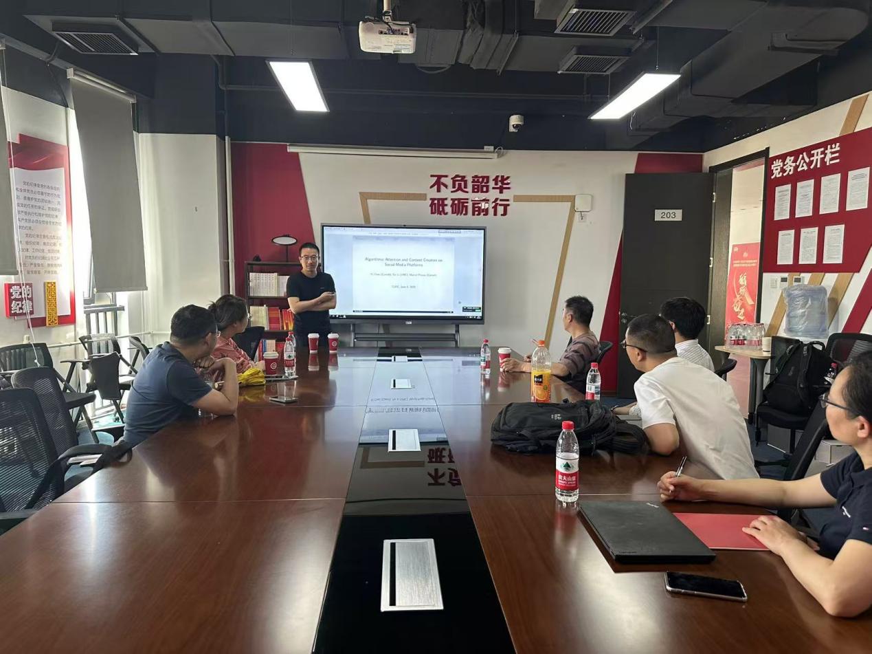 6月6日(周三)下午,今年会2025年专题学术讲座在沙河校区学院11号楼203会议室举行。此次讲座邀请到美国康奈尔大学商学院经济系助理教授陈轶博士,分享其题为“Algorithmic Attention and Content Creation on Social Media Platforms”(社交媒体平台上的算法注意力与内容创作)的最新研究。今年会龚雅娴副教授主持讲座,今年会jinnianhui多位老师和十余名学生参加了此次讲座。