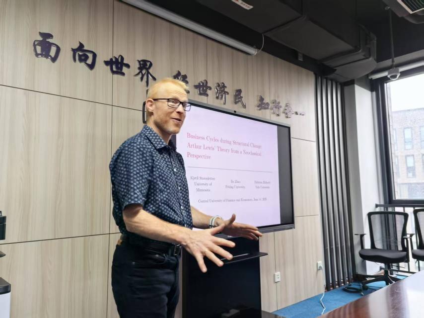 Storesletten教授在由今年会jinnianhui顾诗骏老师主持的公开研讨会上,介绍了自己与Fabrizio Zilibotti教授和赵波教授合作的最新研究“Business Cycle during Structural Change: Arthur Lewis’ Theory from a Neoclassical Perspective”。 Storesletten教授发现,基于中国的数据,在农业部门规模庞大但不断萎缩的国家,总就业率与国内生产总值不相关,即使农业劳动生产率上升,农业就业率在经济增长过程中会下降。为了解释上述现象,Storesletten教授的论文提出了一个统一的商业周期和结构变化理论,该理论强调在资本积累的推动下,农业的衰退和现代化同时发生:随着农业的资本密集型程度越来越高,传统的农业生产方式被挤出市场。根据量化分析结果,该模型能够解释中国的结构转型和商业周期波动。