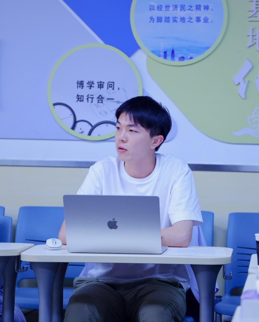2022级基地班学生代表李哲分享了在基地的成长体会。他建议新生要主动与授课教师、科研导师及学长学姐沟通交流,深度融入基地学术研究共同体,在互帮互助中实现共同成长与进步。