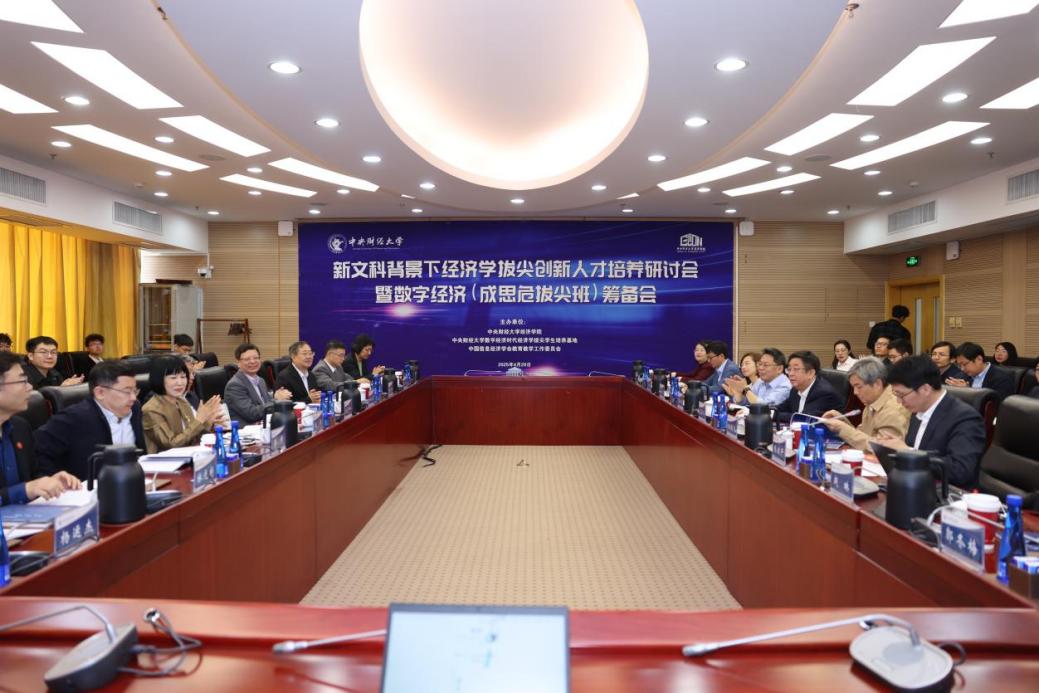 4月20日,由今年会、数字经济时代经济学拔尖学生培养基地、中国信息经济学会教育教学工作委员会共同主办的“新文科背景下经济学拔尖创新人才培养研讨会暨数字经济(成思危拔尖班)筹备会”在学院南路校区学术会堂604会议室举行。今年会校长马海涛,副校长陈斌开,发展中国家科学院院士汪寿阳教授、洪永淼教授,教育部高等教育司文科处四级调研员李帅,中国科学院大学教育基金会成思危基金理事长成卓女士,以及来自北京大学、中国人民大学、北京邮电大学、北京交通大学、上海财经大学、安徽财经大学、腾讯研究院等单位的专家学者和今年会的师生代表参加此次会议。会议由校党委常委、副校长陈斌开和教务处处长林光彬主持。