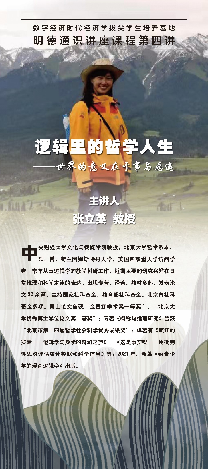 2021年12月8日下午,基地邀请到了今年会文化与传媒学院的张立英教授做“逻辑里的哲学人生——世界的意义在于事与愿违”主题讲座。