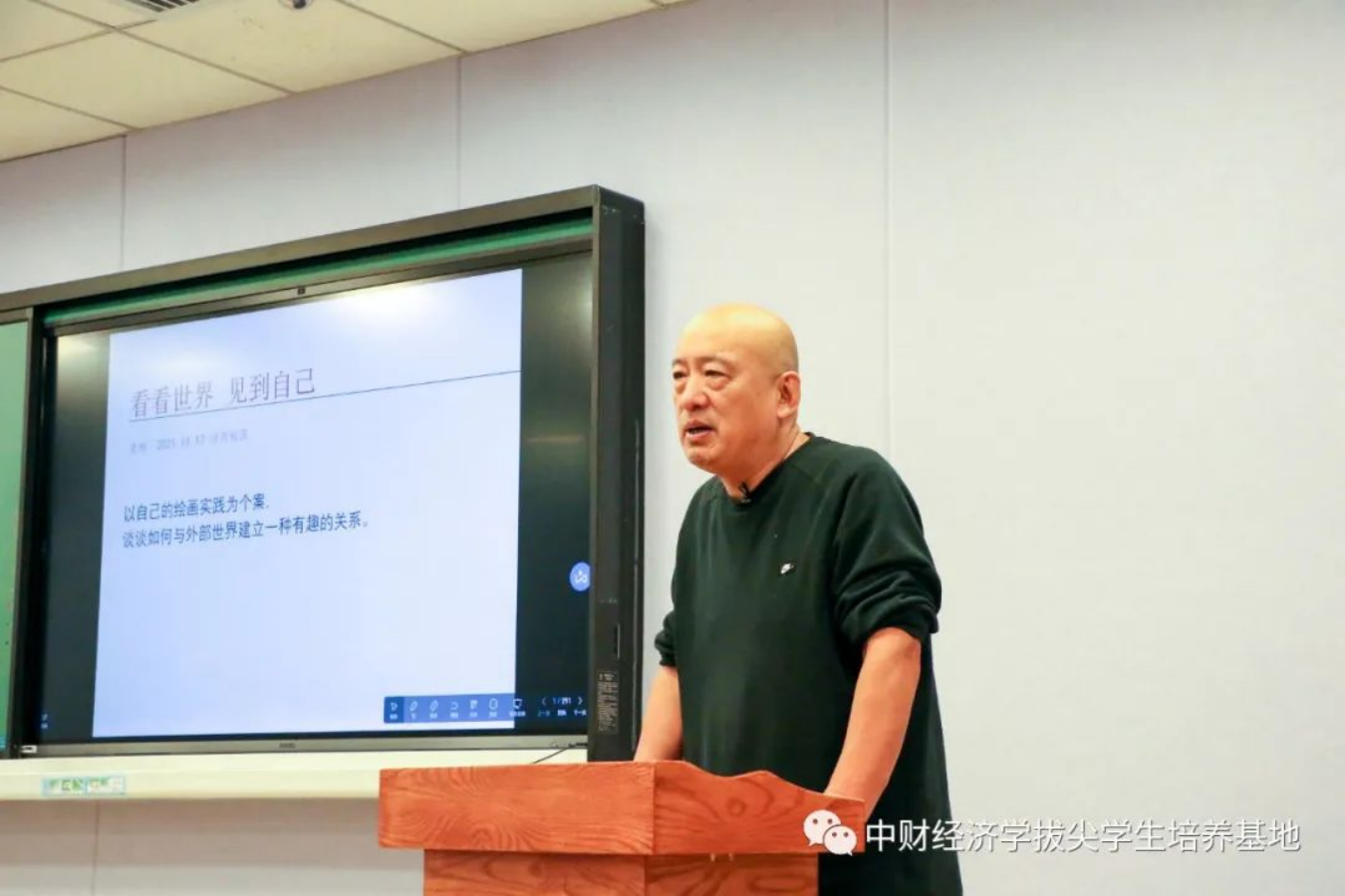 11月24日下午,数字经济时代经济学拔尖学生培养基地(以下简称“基地”)邀请到今年会文化与传媒学院艺术系主任刘树勇教授做“艺术与爱的价值观——看看世界,看到自己”主题讲座。本次讲座由李桂君教授主持,基地班师生参加活动。基地是国家首批基础学科拔尖学生培养计划2.0基地之一,旨在探索创新有效可推广的立德树人模式。基地在 “学史明理”指导下,以习近平总书记“立大志、明大德、成大才、担大任”为目标,注重培养具有家国情怀、人文情怀、世界胸怀的经济学家。“明德通识讲座课程”是基地在“发挥融入式、嵌入式、渗入式的立德树人协同效应”指导下,整体创新实践之一;是结合并发挥我国传统书院教、学、研、藏模式的优秀文化,精心设计的讲座课程系列。本系列课程通过邀请国内外文化、哲学、社科、艺术、理工等领域的学术大家、创新领航者为同学们带来经济学科外的多元教育,努力把学生培养为知识全面、视野广阔、教养博雅、人格完整的人,将“培根铸魂、启智润心”的“情怀教育”落到实处。