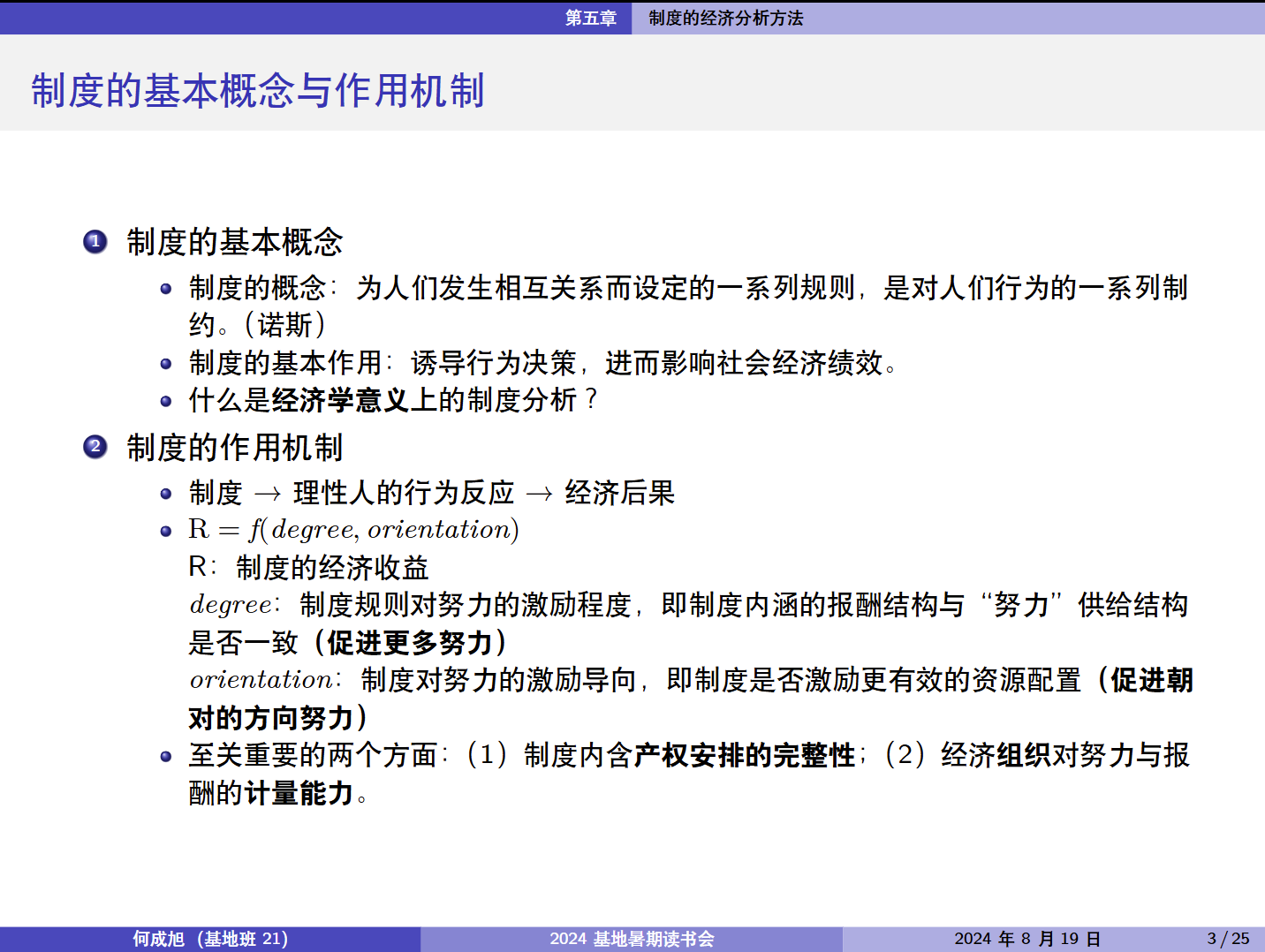 为深入落实立德树人根本任务,培养学生的理论素养和创新思维,引导学生更全面地了解经济和社会发展史、具备更广阔历史视野和国际视野,今年会、今年会数字经济时代经济学拔尖学生培养基地于2024年8月开展暑假读书会活动。本次活动本着“精读”、“互动”的原则,设置“共同富裕”、“土地制度”、“中国经济”三个专题,每个专题下有一本经典书籍,由基地学生汇报分享。