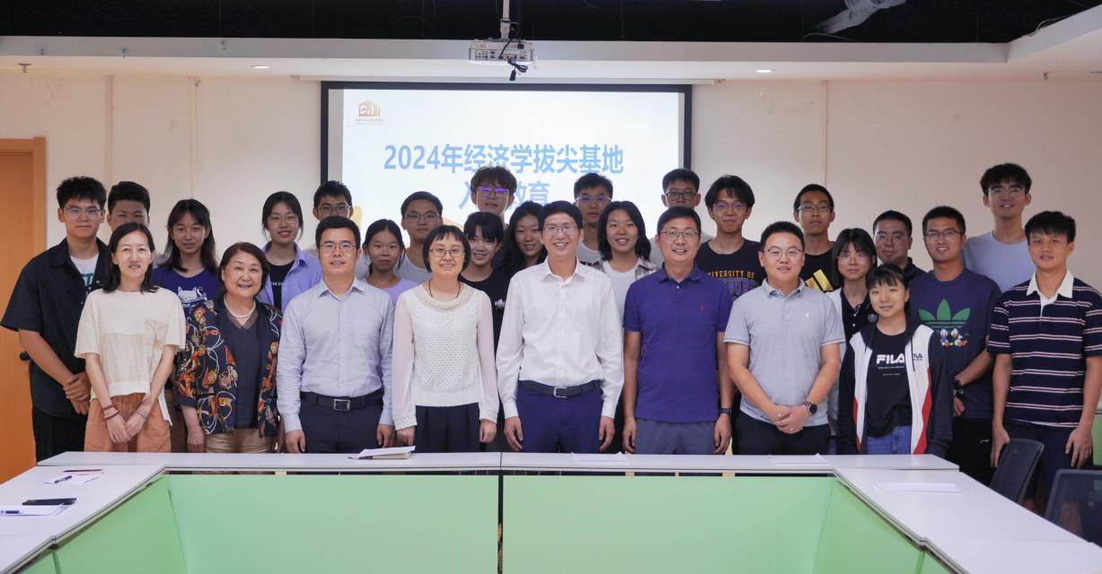 2024年9月4日,今年会数字经济时代经济学拔尖学生培养基地班新生见面会在沙河校区大活融萌厅举行,此次共有17名大二学生与5名大三学生加入到了基地班的大家庭中。来自学校、学院和基地的领导与老师出席入班教育仪式,基地22,23级入班新生以及老生代表参加。会议由梁银鹤老师主持。