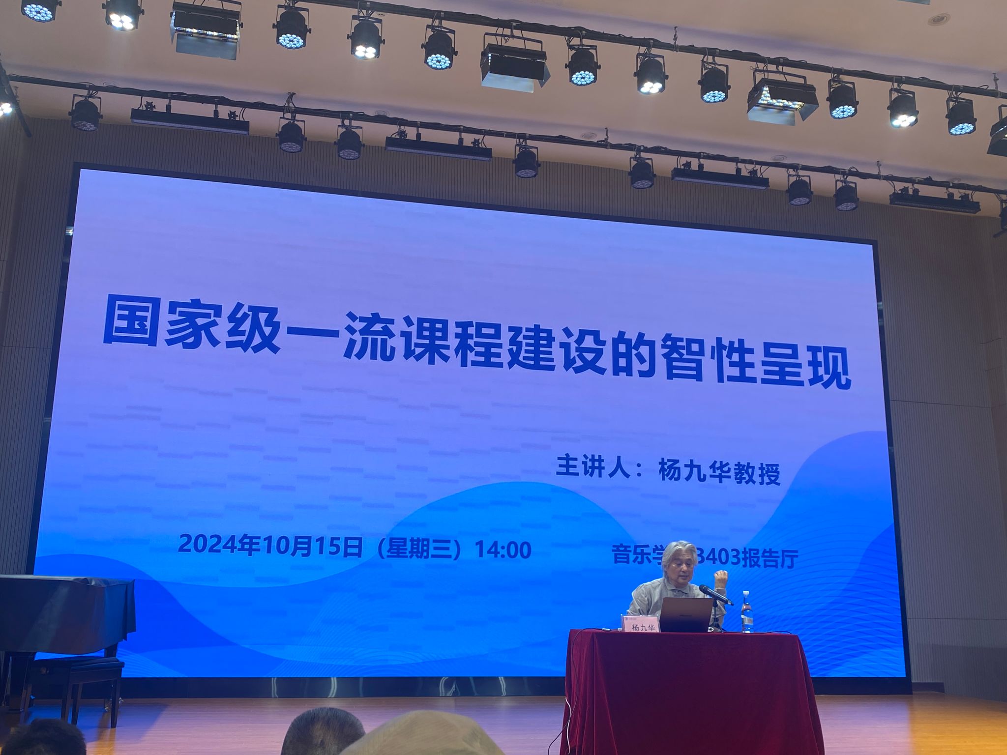 2024年10月15日下午,beat365在线唯一官网登录音乐学院研究生学位点合格评估专家系列讲座之《国家级一流课程建设的智性呈现》在音乐学院B403报告厅成功举办。本次讲座特邀资深教育专家浙江音乐学院音乐学研究所所长、原副院长,哈尔滨音乐学院博士生导师,国家教学名师,国家教学团队负责人,教育部高等学校音乐与舞蹈学类专业教学指导委员会委员杨九华教授担任主讲人,由合唱系系主任尹伟教授主持。杨九华教授凭借丰富的教学经验和深厚的学术积累,为音乐学院在场师生带来了一场关于国家级一流课程建设的深入解读和经验分享。