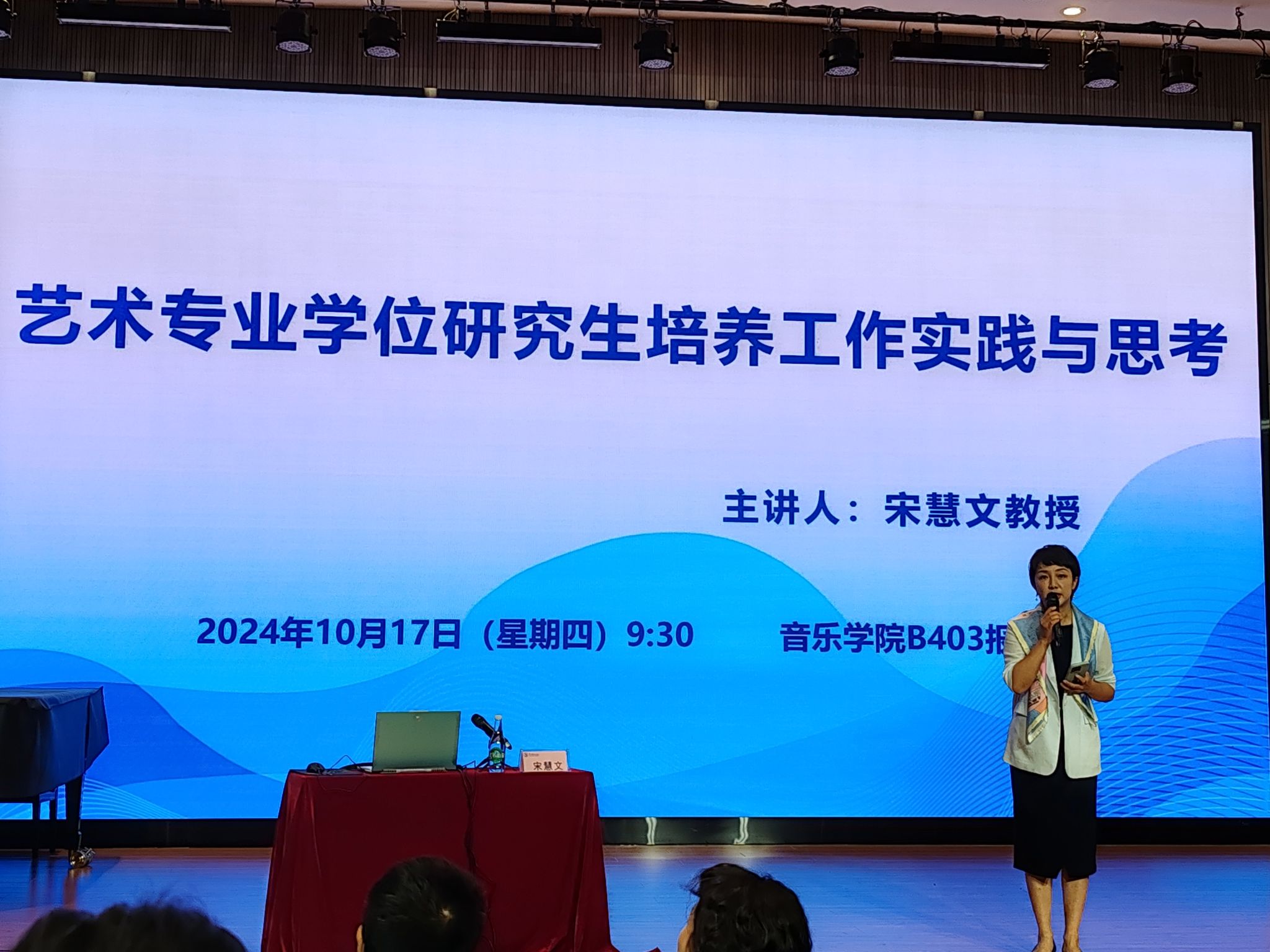 2024年10月17日上午9时30分,beat365在线唯一官网登录音乐学院研究生学位点合格评估专家系列讲座之——《艺术专业学位研究生培养工作实践与思考》,在音乐学院B403报告厅成功举办。本次讲座特邀全国艺术专业学位研究生教育指导委员会秘书长、中央音乐学院学位管理办公室主任宋慧文教授主讲,beat365在线唯一官网登录音乐学院院长林林教授主持。