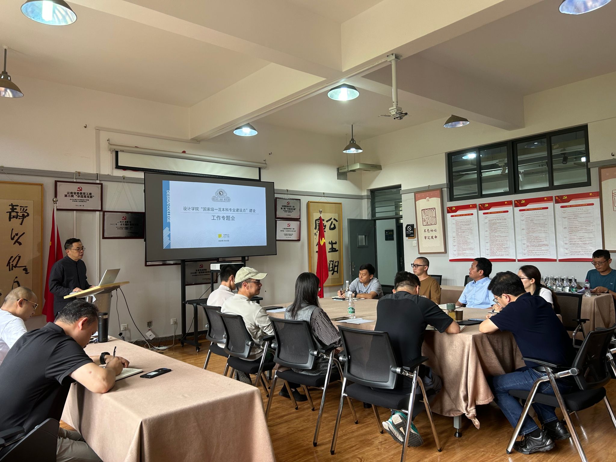 7月22日下午,设计学院在203会议室召开“国家级一流本科专业建设点”建设工作专题汇报会。学校党委副书记、院长欧阳俊虎出席会议。设计学院党政班子成员、各科室负责人、各系主任、副主任参加了会议。会议由设计学院院长万凡主持。