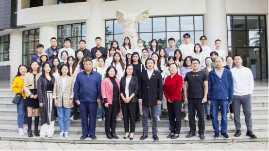 典礼结束后,民族艺术研究院师生在图书馆门前合影留念。
