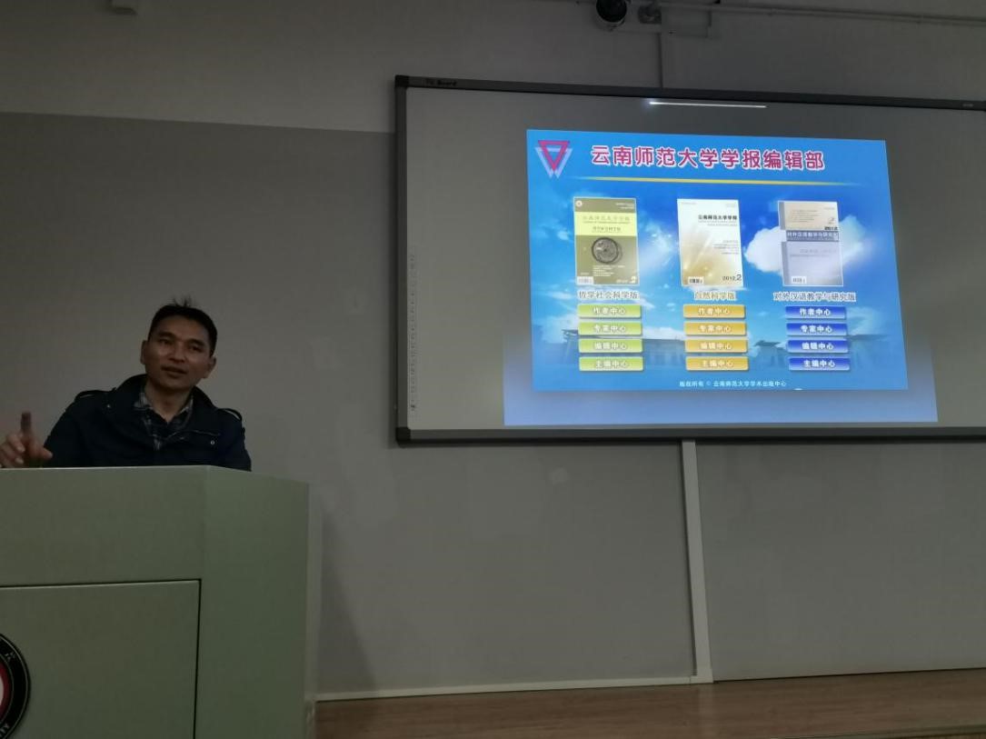 2020年11月11日周三下午17:00时,beat365在线唯一官网登录民族艺术研究院邀请云南师范大学编审、民俗学博士、博士生导师黄龙光教授,在公教楼A302作了一场题为《学术期刊论文撰写与发表》的学术讲座。本次讲座由魏美仙教授主持,全校多位教师及学生到场聆听,座无虚席。