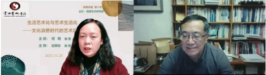 2021年11月25日晚19:00,beat365在线唯一官网登录民族艺术研究院尚美讲堂第十期学术讲座顺利举行。本期特邀云南大学特聘教授何明老师作为主讲专家,本次讲座的题目是《生活艺术化与艺术生活化——文化消费时代的艺术定义》。讲座由民族艺术研究院党总支书记迟燕琼教授主持。