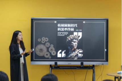 许明同学以版画为研究对象,从机械复制对版画艺术的影响及对机械复制的反思两个方面进行探讨;曹笑笑同学以戏剧为切入点,围绕机械复制时代下的戏剧表演展开分享,并阐述本雅明的“韵味”与布莱希特的“共鸣”二者的联系;李浩鹏同学透过《机械复制时代的艺术作品》一书,结合实地田野调查,提出机械复制技术对大众艺术欣赏的影响;孙明琳同学从非遗文化历史角度,对《机械复制时代的艺术作品》中的原真性进行分析。