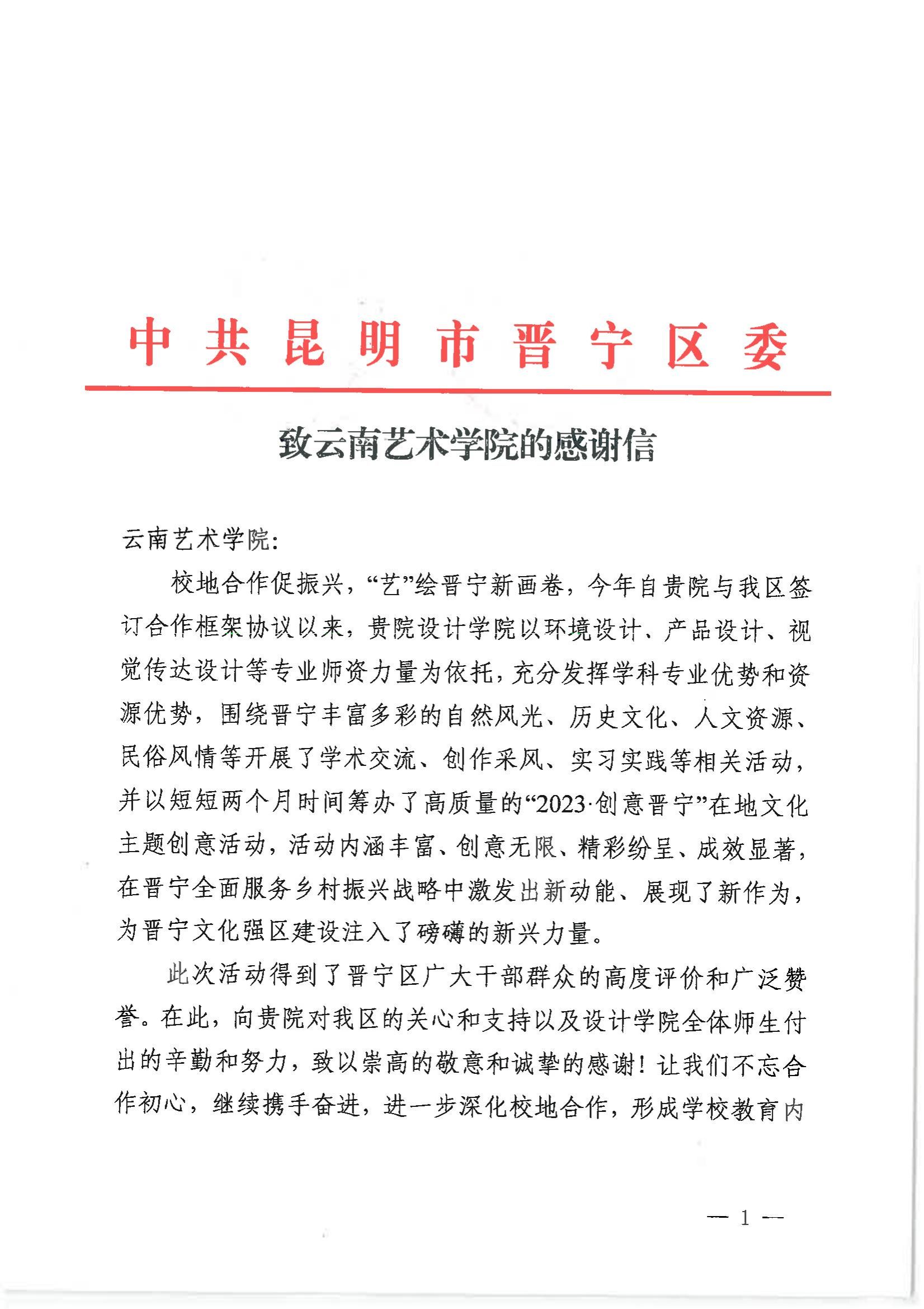 beat365在线唯一官网登录设计学院以《毕业设计》实践教学改革为契机,自2004年提出并践行“服务于民族文化、生态文明建设的‘政用产学研’创新设计人才培养模式”的改革。持续开展“校地合作”在地文化主题创意活动改革实践,培养了大量服务国家战略及社会需求的创新设计人才,成果显著。2023年,设计学院携2023届618位毕业生奔赴晋宁,以“艺”与“美”为标尺,充分发挥学科专业优势和资源优势,围绕晋宁丰富多彩的自然风光、历史文化、人文资源、民俗风情等开展了学术交流、创作采风、实习实践等相关活动,奉献出充满设计智慧与人文情怀的优秀作品。在晋宁全面服务乡村振兴战略中激发出新动能、展现了新作为,为晋宁文化强区建设注入了磅礴的新兴力量。在此过程中,收到了中共昆明市晋宁区委和昆明市晋宁区人民政府的感谢信,对学院表示衷心的感谢和崇高的敬意。