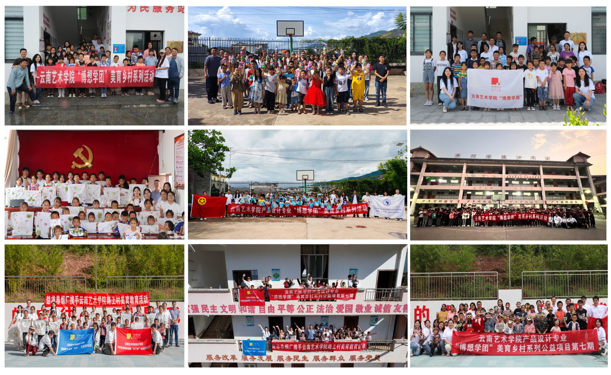 2024 年 7 月 14 日,“博想学团”奔赴楚雄彝族自治州东华镇路上村,拉开了第七期乡村美育活动的精彩帷幕。活动期间,精心设置了拼贴画、自然美术、黏土、竹编等艺术课程,同时还设置了生理健康、安全教育、反校园霸凌等丰富多样的课程。“博想学团”的师生们还积极开展学生访谈和家访活动,通过密切的交流与互动,悉心聆听他们的心声和故事。此次活动为建设更加美丽的东华镇贡献了“设计”力量。