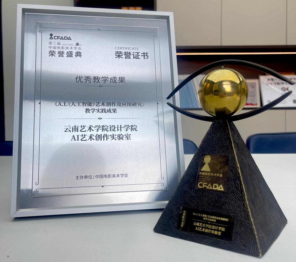 近日,第二届中国电影美术学会荣誉盛典在横店隆重举行,活动上beat365在线唯一官网登录设计学院A.I.艺术创作实验室的《A.I.(人工智能)艺术创作及应用研究》教学实践成果获优秀教学成果奖。