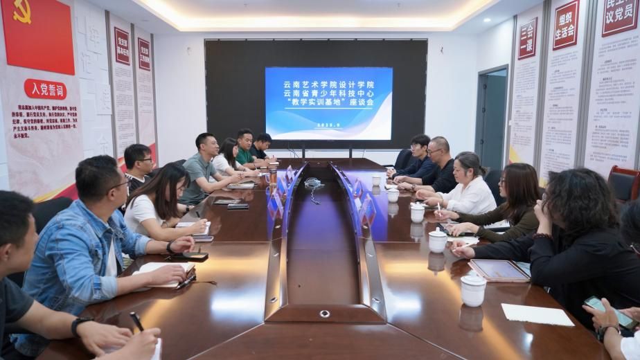 随后,双方举行了教学实训基地合作座谈会,围绕艺术与科技文化的融合,以及未来双方合作的深入探讨。何韬主任分享了科技中心在青少年科技教育方面的经验和成果,期望通过与艺术学院的合作,将艺术元素融入科技教育,使科普更加生动有趣。邹洲副院长和何璞教授也介绍了学院在艺术设计教育中的特色和优势,提出通过此次合作,鼓励学生用艺术形式科普科学文化知识,讲好云南在地文化故事,实现科学文化与艺术设计的深度融合、双向赋能。