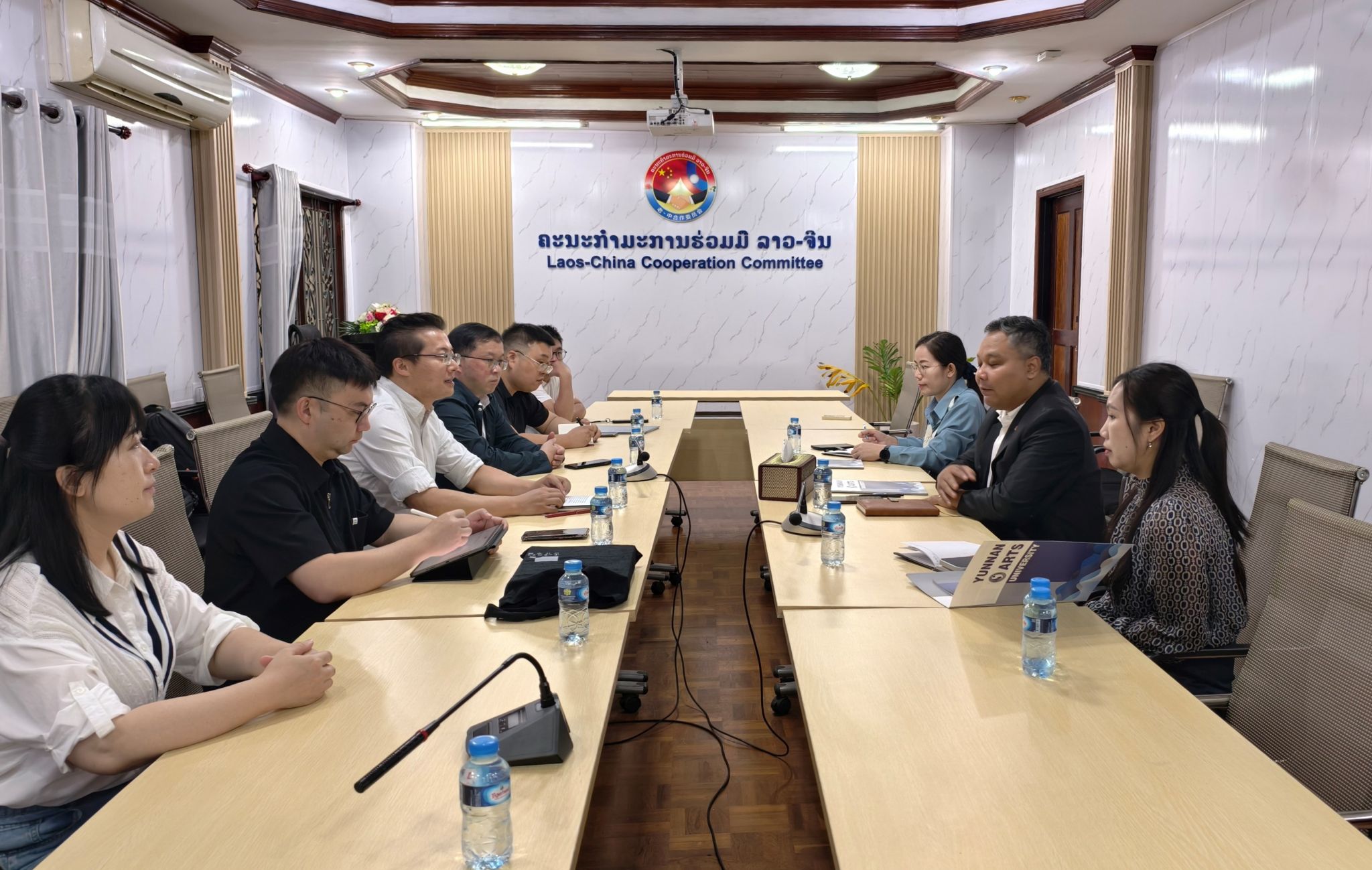 代表团在五天的行程中,与老挝多个政府部门、高校和文化机构进行了深入对接。代表团首先对老中合作委员会办公厅进行了访问,双方就艺术、文化、教育等领域的合作方向与实施路径进行了深入探讨。
