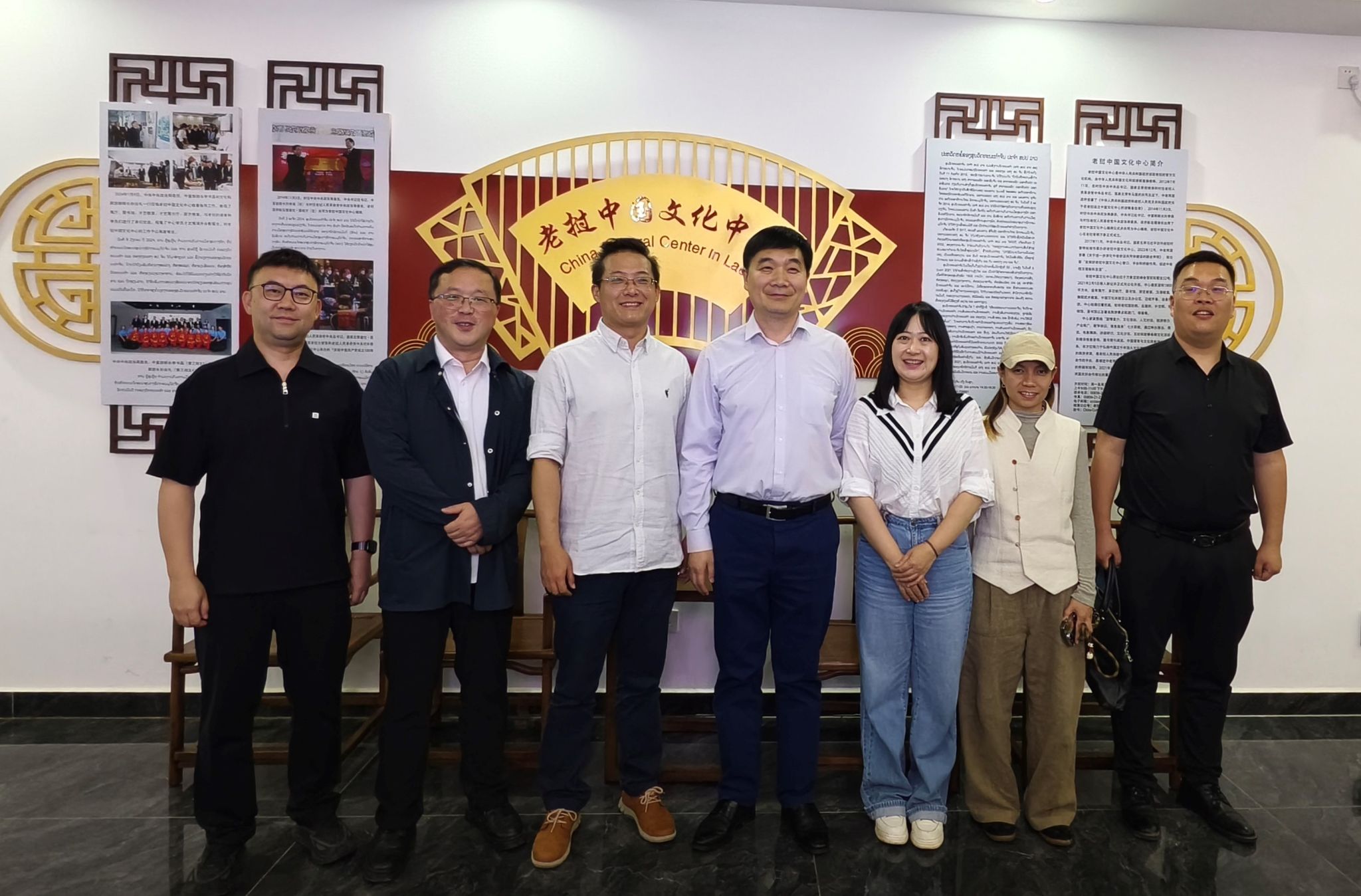 在老挝中国文化中心,代表团与罗卫建主任就2026年中老建交65周年的相关文化活动进行了交流,达成了初步合作意向并商定了推进计划。