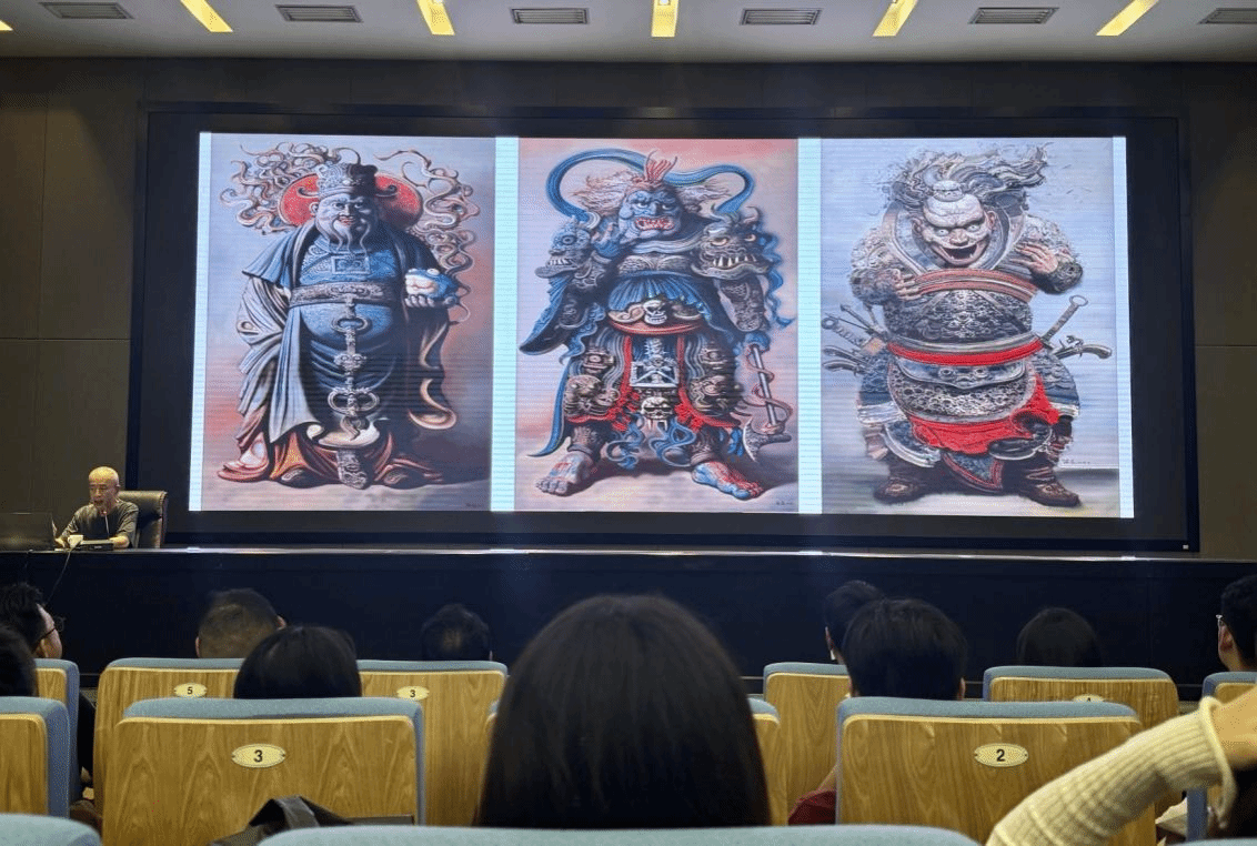 讲座以热门游戏《黑神话—悟空》为切入点,陈流教授深入探索了绘画创作的“故事性”。他从游戏画面的视觉效果和艺术处理谈起,带领大家领略了这款游戏中令人惊叹的艺术魅力。接着,陈流教授对传统神话故事《西游记》进行了再解读,从古老的神话中挖掘出了新的艺术灵感。通过对游戏和传统故事的分析,陈流教授回归到如何面对绘画这一根本问题,深刻阐述了“艺术从故事开始”的观点。