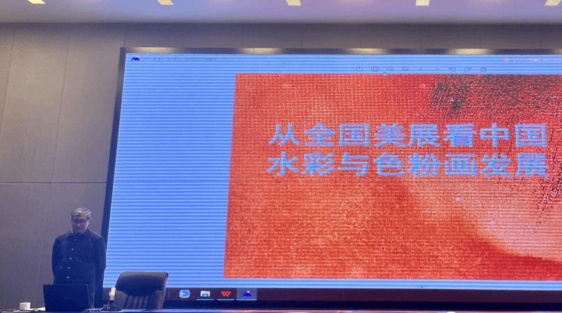 此外,李晓林教授还通过“ 回望历届全国美展中的水彩和色粉画”, 先后对历届全国美展中水彩画的创作情况进行了简要梳理,并通过分析具体作品来展望水彩画未来的发展,并给予了同学们诚恳的建议:“全国美展是一个很宽泛的概念,对于创作者来讲,按照自己的方式去创作即可。从构思到画面再到制作,都可以按照自己喜欢的、擅长的方式去做。”