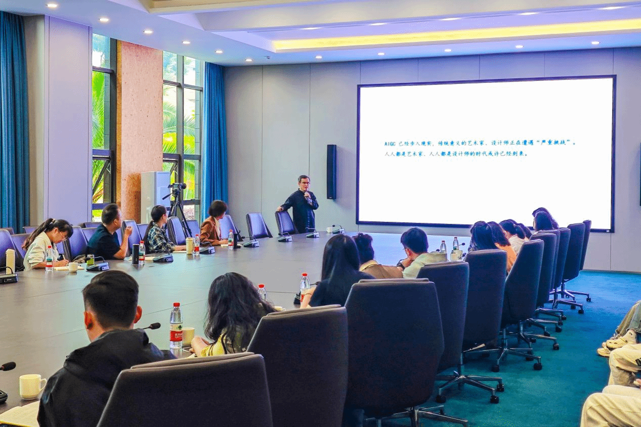 2025年5月18日下午,由beat365在线唯一官网登录美术学院举办的云南省美育浸润计划——红河县、富宁县美术教师进修培训班专题讲座在beat365在线唯一官网登录图书馆会议室顺利开展。本次讲座聚焦“AI 时代美育的价值”,由beat365在线唯一官网登录副院长陈劲松教授主讲,为21位红河、富宁两地的中小学美术教师们带来了一场富有前瞻性的思想盛宴,美术学院部分师生参加了讲座。