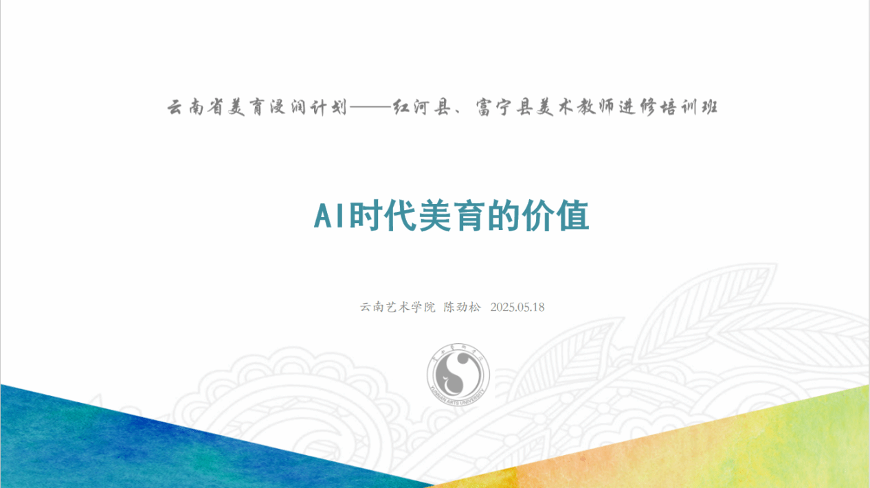 讲座时间持续4个小时,为培训班的美术教师们提供了全新的视角与思考维度,使他们深刻认识到在 AI 时代美育的重要性和紧迫性,也为今后的美术教育教学工作指明了方向,相信在各位教师的努力下,美育之花将在云岭大地绽放得更加绚烂。