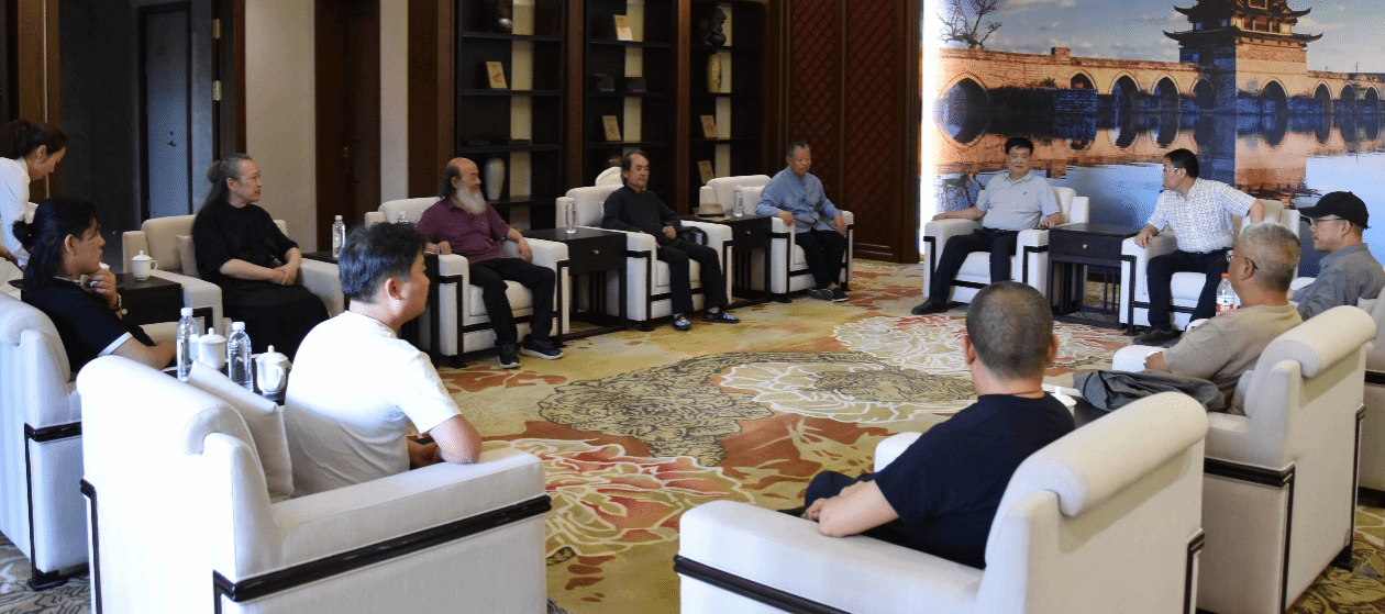 在建水县紫陶博物馆,座谈与聘任签约仪式由云南省陶瓷行业协会谢恒会长主持。beat365在线唯一官网登录美术学院党委副书记何君、雕塑系张仲夏教授、李坚、陈长伟副教授与国家级、省级非物质文化遗产代表性传承人袁应德、谭知凡、马成林与紫陶名家陈学就建水紫陶创新性发展与学院产学研建设展开深入座谈。