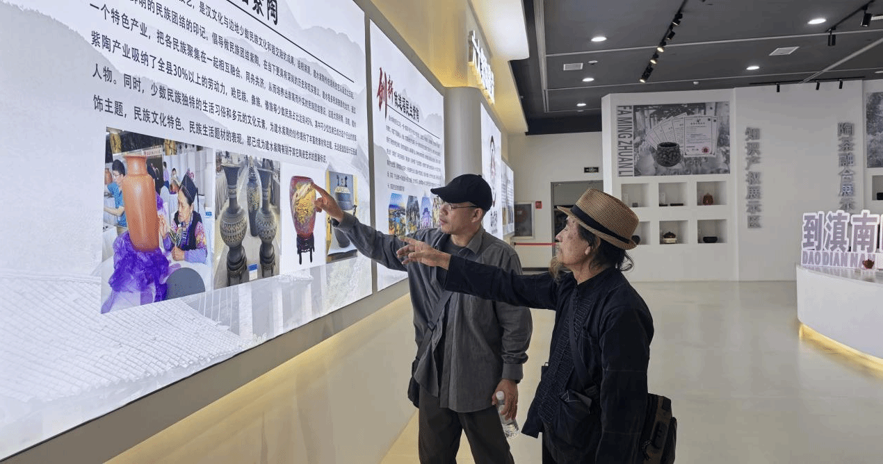 签约仪式结束后,与会师生在谢恒会长引导与讲解下,参观紫陶博物馆的馆藏精品,认真观看、听取了“建水紫陶四老”对其创作的紫陶作品的讲解,深刻体会了建水紫陶作为国家级非物质文化遗产的历史与现实价值,以及“建水紫陶四老”深厚的文化底蕴和精湛的传统技艺。