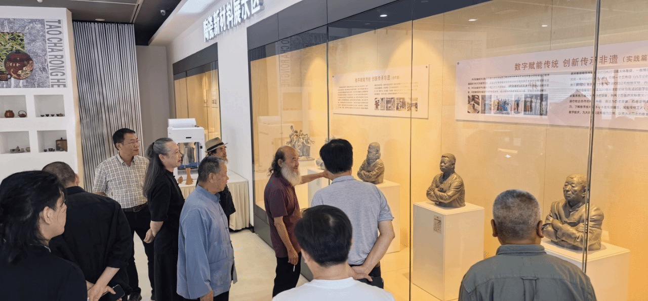 在数字赋能与创新展区,与会师生参观了云南省高校数字化艺术创作重点实验室为“建水紫陶四老”创作的数字3D雕塑,“建水紫陶四老”看到自己惟妙惟肖的塑像,听取张仲夏教授介绍数字化创作过程后,对云南省高校数字化艺术创作重点实验室科研实力强劲的“数字化艺术创新应用人才”培养目标给予高度肯定,希望通过双方的合作,以数字创新助力建水紫陶高质量发展。