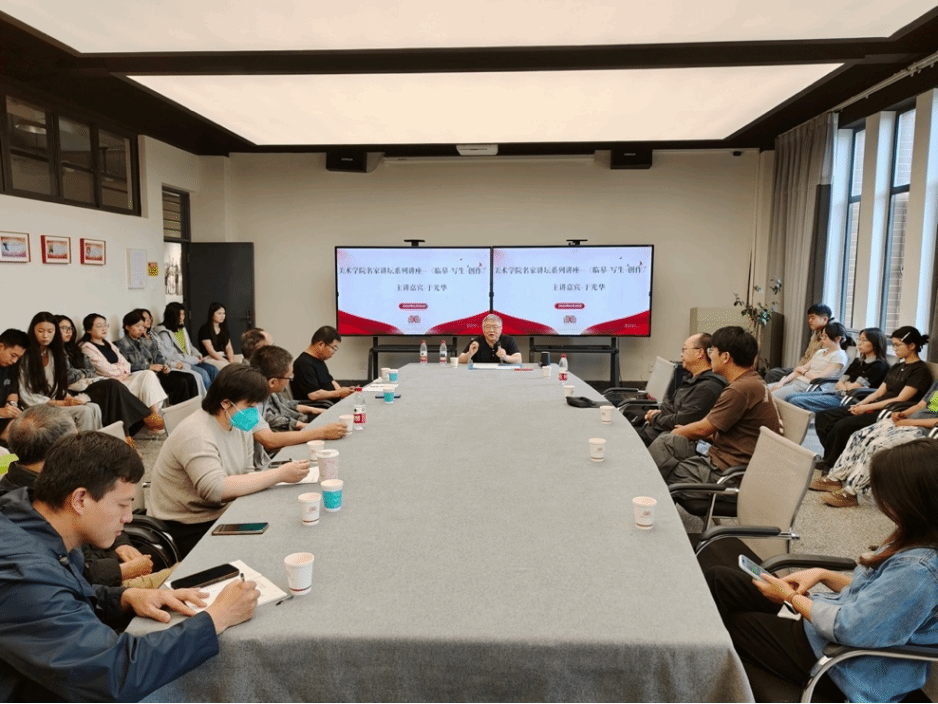 于光华教授从写意花鸟画笔墨程式、情景表达、虚实相生、笔墨结构、势与意的转化切入,详细阐述“临摹-写生-创作”三位一体的实践方式,临摹不仅是师古人之迹,更是师古人之心,强调“墨非蒙养不灵”,让师生对传统绘画理论有了更深入的体会和理解。