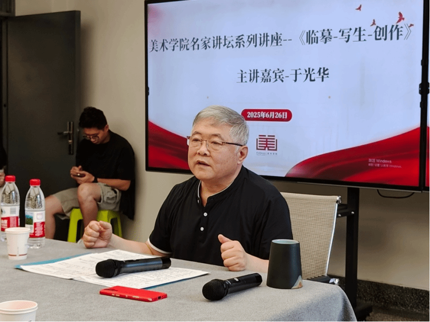 讲座中,于光华教授将写意花鸟画经典理论与个人创作实践经验相结合,为大家指明学习大写意花鸟画的研习门径。他鼓励同学们在艺术道路上不断探索,除了技法实践还要提升艺术素养和创作水平,要立足当下,致敬传统,要有足够的自信面对写意花鸟画艺术的传承发展。